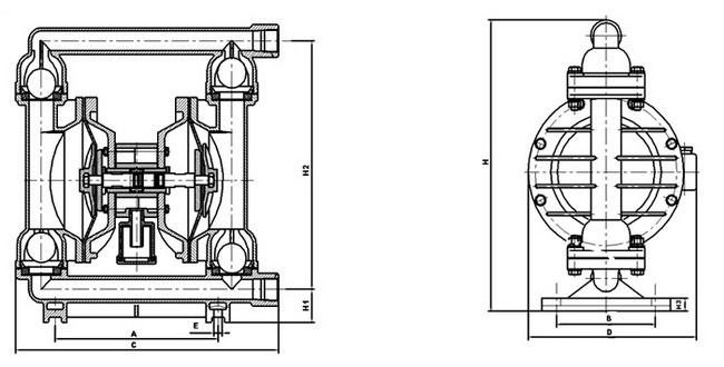 QBK型氣動隔膜泵外形尺寸與結構圖